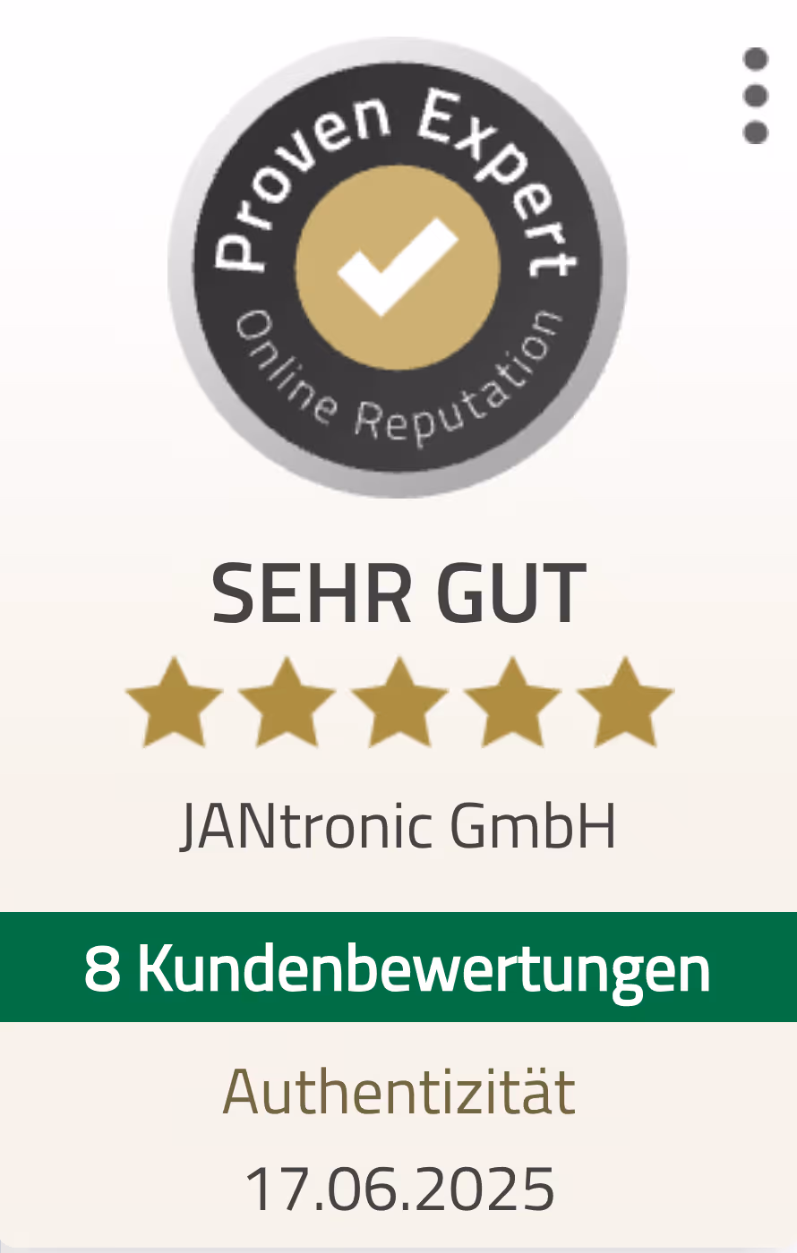 Bei JANtronic wurde bislang jedes meiner Anliegen schnell, freundlich und professionell bearbeitet. Der Kontakt zu den Mitarbeitenden ist herzlich und die Beratung kompetent – vielen Dank!